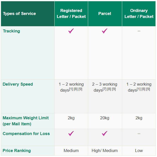 The shipping methods available to you depend on your location, the number of items you are purchasing and their weight. Please refer to the following tables for further information.