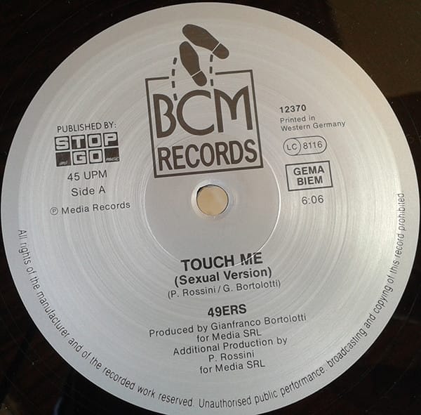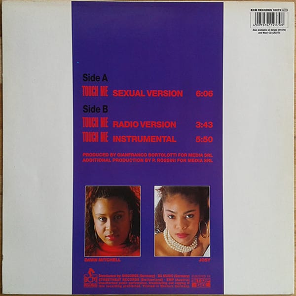 A: Touch Me (Sexual Version) B1: Touch Me (Radio Version) B2: Touch Me (Instrumental)