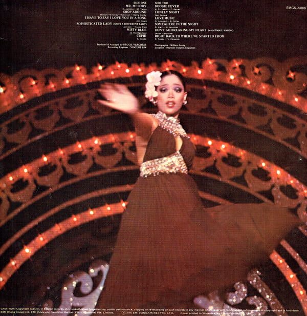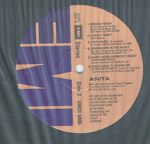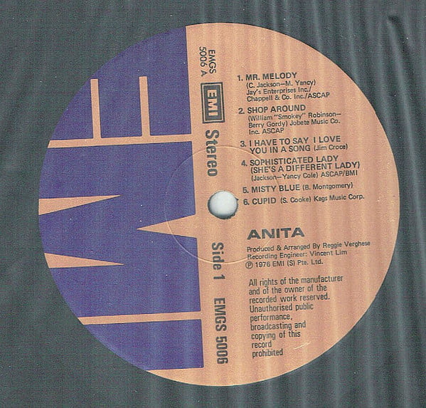 | Tracks | A1: Anita Sarawak - Mr Melody A2: Anita Sarawak - Shop Around A3: Anita Sarawak - I Have To Say I Love You In A Song A4: Anita Sarawak - Sophisticated Lady A5: Anita Sarawak - Misty Blue A6: Anita Sarawak - Cupid B1: Anita Sarawak - Boogie Fever B2: Anita Sarawak - Lonely Night B3: Anita Sarawak - Love Music B4: Anita Sarawak - Somewhere In The Night B5: Anita Sarawak - Dont Go Breaking My Heart B5: Ismail Haron - Dont Go Breaking My Heart B6: Anita Sarawak - Right Back To Where We Started From |