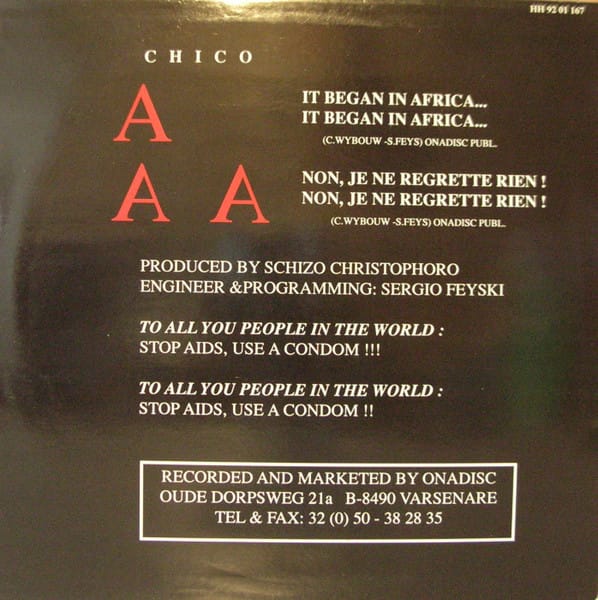 | Tracks | A1: It Began In Africa (Mix 1) A2: It Began In Africa (Mix 2) AA1: Non, Je Ne Regrette Rien (Mix 1) AA2: Non, Je Ne Regrette Rien (Mix 2) |