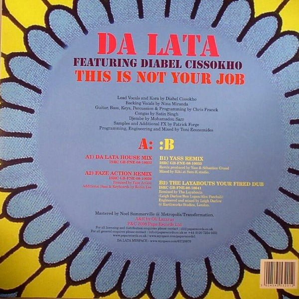 | Tracks | A1: This Is Not Your Job (Da Lata House Mix) A2: This Is Not Your Job (Faze Action Remix) B1: This Is Not Your Job (Yass Remix) B2: This Is Not Your Job (The Layabouts Your Fired Dub) |