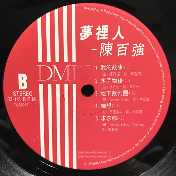 | Tracks | A1: 夢裡人 A2: 未唱的歌 A3: 錯愛 A4: 我想妳 A5: 揮不去的妳 B1: 我的故事 B2: 水手物語 B3: 地下裁判團 B4: 細想 B5: 求求妳 |