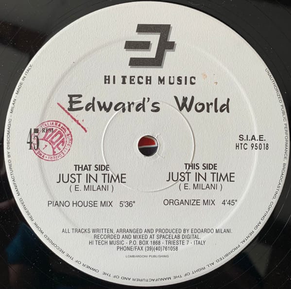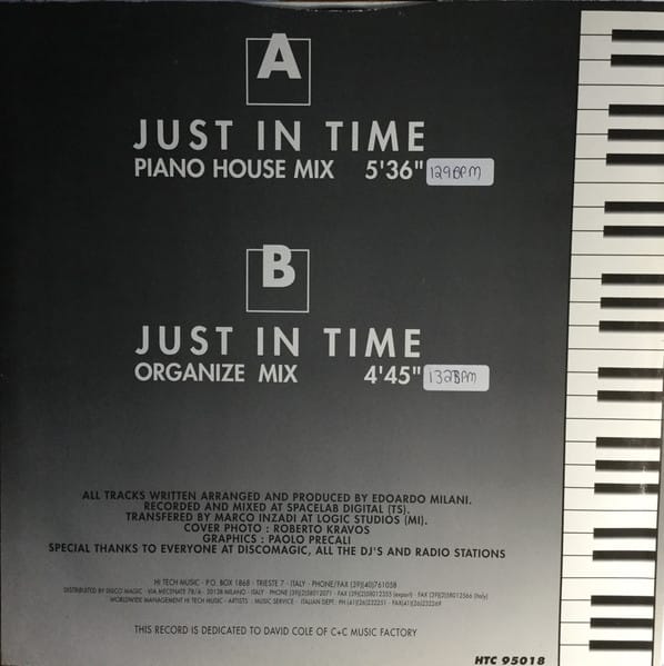 A: Just In Time (Piano House Mix) B: Just In Time (Organize Mix)