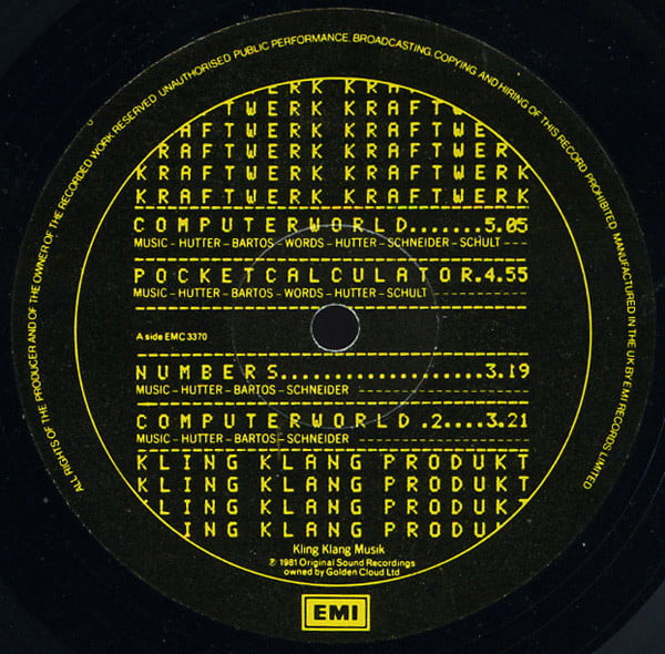 | Tracks | A1: Computerworld A2: Pocket Calculator A3: Numbers A4: Computerworld 2 B1: Computer Love B2: Homecomputer B3: It's More Fun To Compute |