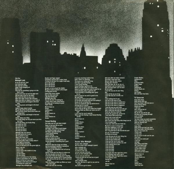 | Tracks | A1: Midnight Lady A2: Sexual Healing A3: Rockin' After Midnight A4: 'Til Tomorrow B1: Turn On Some Music B2: Third World Girl B3: Joy B4: My Love Is Waiting |