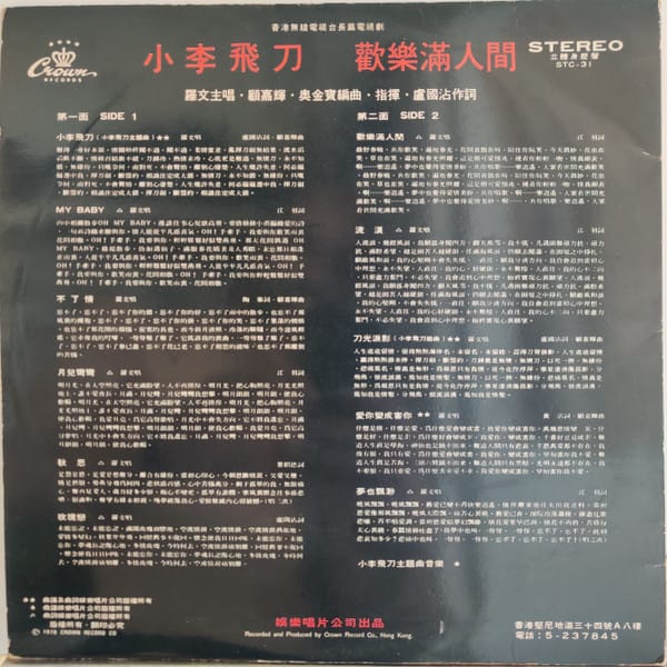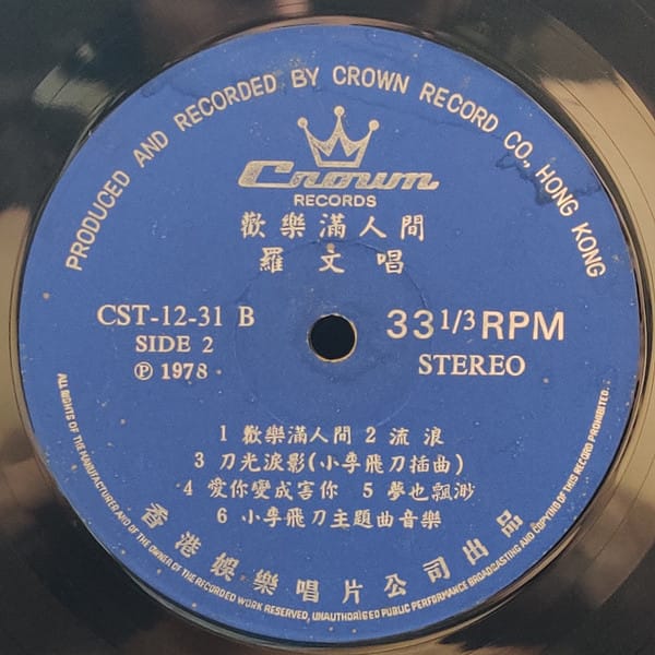 We love early Roman Tam. This is a TVB Drama soundtrack 小李飛刀 (The Little Li Flying Dagger). We love A4 and B1 for their easy boogie strut.