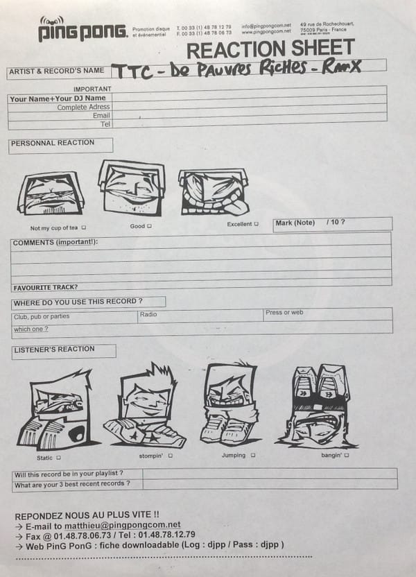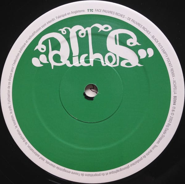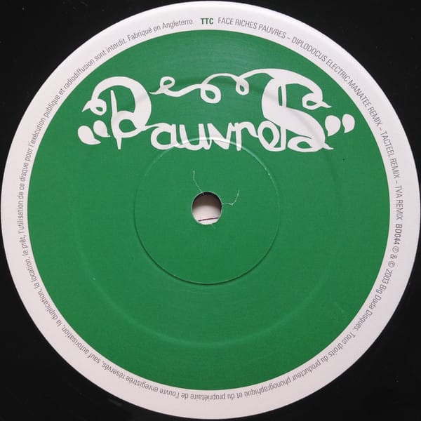 | Tracks | A1: De Pauvres Riches A2: De Pauvres Riches (Black Fu's Empty Pocket Remix) A3: De Pauvres Riches (Accapella) B1: De Pauvres Riches (Diplodocus Electric Manatee Remix) B2: De Pauvres Riches (Tacteel Remix) B3: De Pauvres Riches (TVA Remix) |