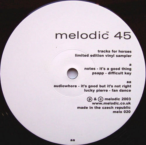 | Tracks | A1: Notes - It's A Good Thing A2: Psapp - Difficult Key B1: Audiowhores - It's Good But It's Not Right B2: Lucky Pierre - Fan Dance |
