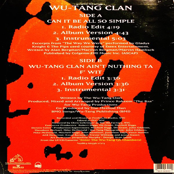 | Title | Can It Be All So Simple / Wu-Tang Clan Ain't Nuthing Ta F' Wit |
